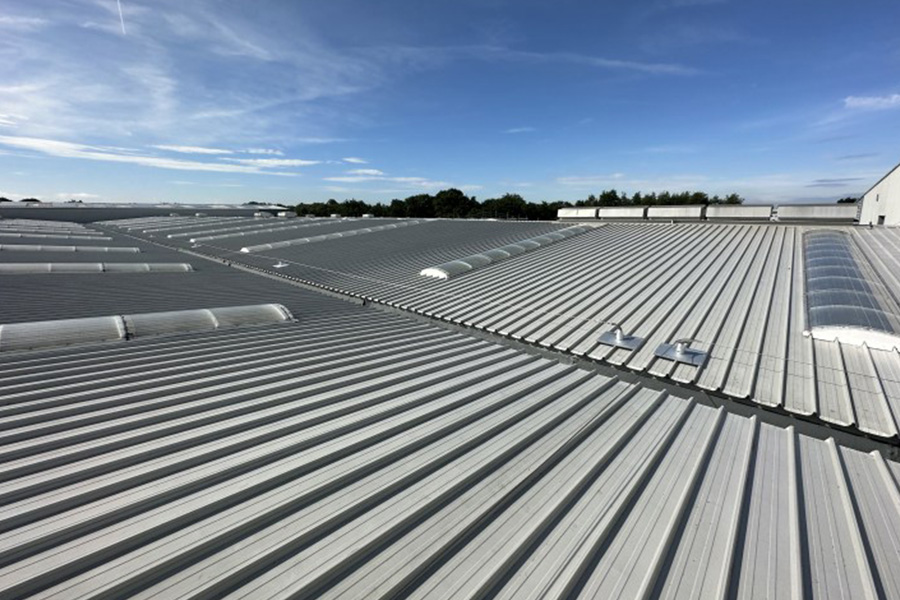 The overall refurbishment involved re-coating of the entire 21,500m2 profiled metal roof surface, re-waterproofing of the valley gutters, and replacement of 143 barrel-vault roof-lights.